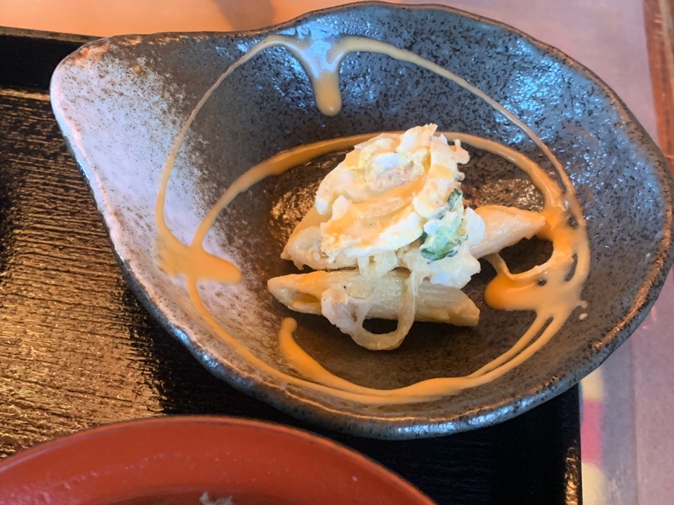 定食にはごはん、お味噌汁、小鉢、香の物が付きます。