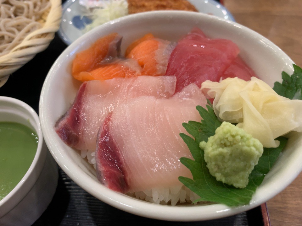 今回はそばセット(海鮮3色丼) 1,099円(税抜)を注文。