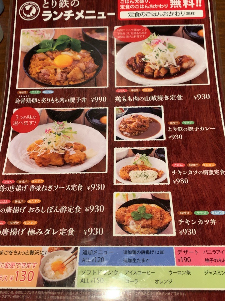 とり鉄のランチメニューは美味しそうな鶏料理がたくさんあり、どれを食べるか悩みます。