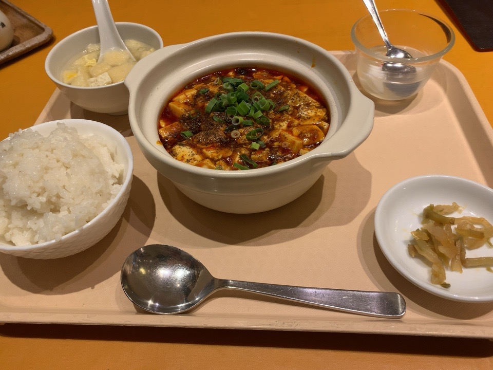 ピリ辛な麻婆豆腐を食べて頑張りましょう。