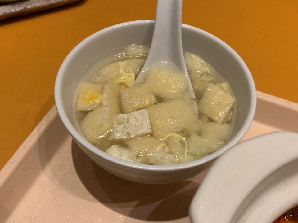 油揚げがスープを吸って、口の中で溶け出し麻婆の辛さを抑えてくれました。