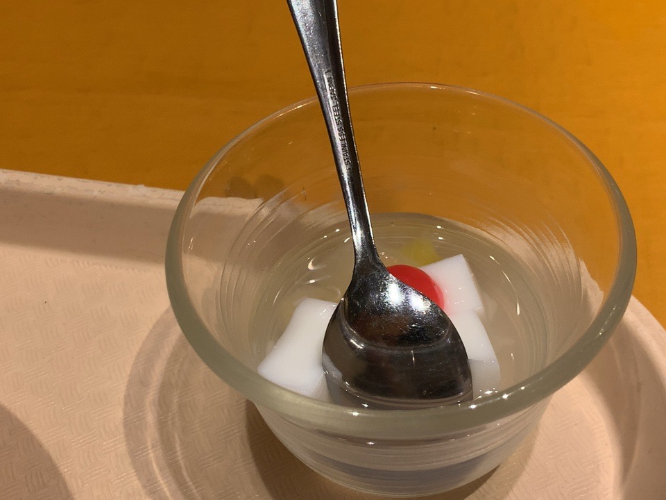 口の中が辛さと熱さで充満していたので、デザートの甘さと冷たさはありがたい感じでした。