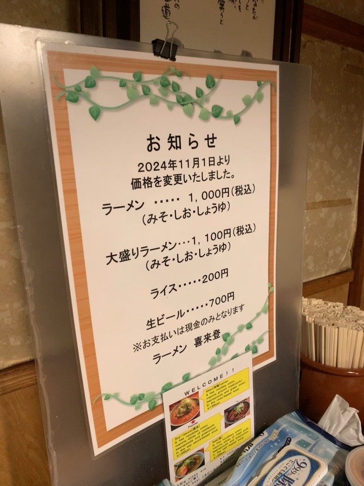 2024年11月から価格が上がったみたですが、ラーメン1杯1,000円はかなり安いです。