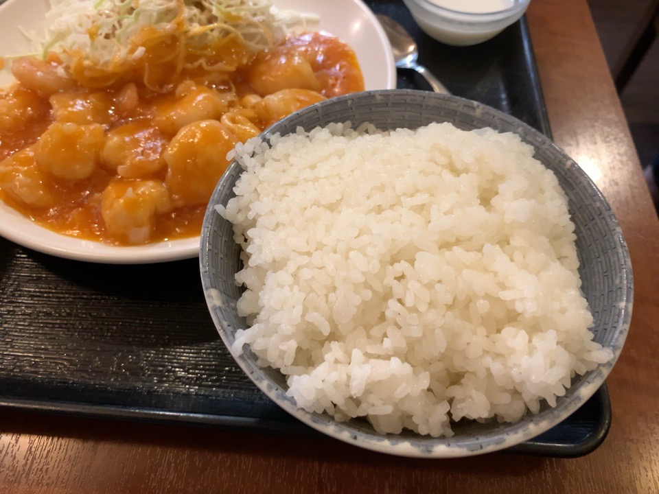 ホカホカのごはんは、エビチリと一緒に口の中に入れると幸せを感じます。