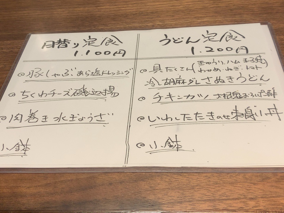 日替わ定食とうどん定食があり、今回は日替り定食 1,100円(税込)を注文。