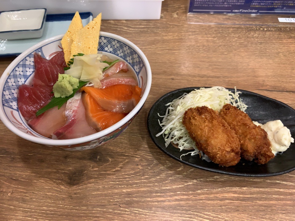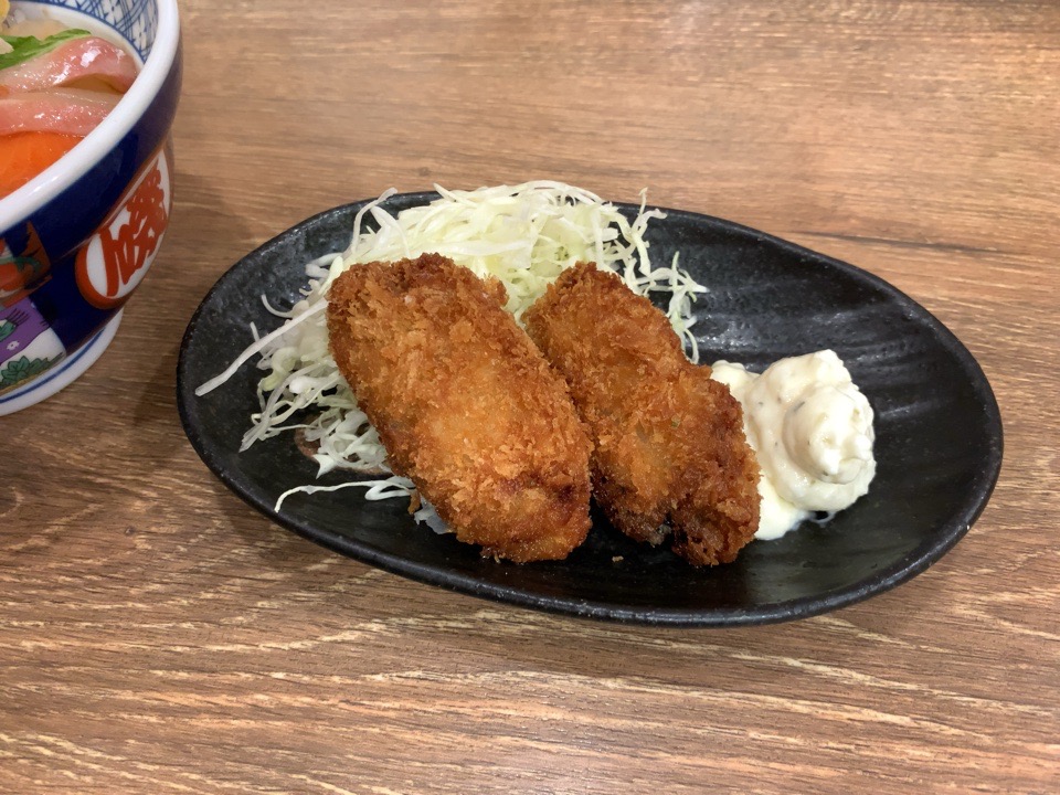 こちらが4色漬丼と牡蠣フライです。