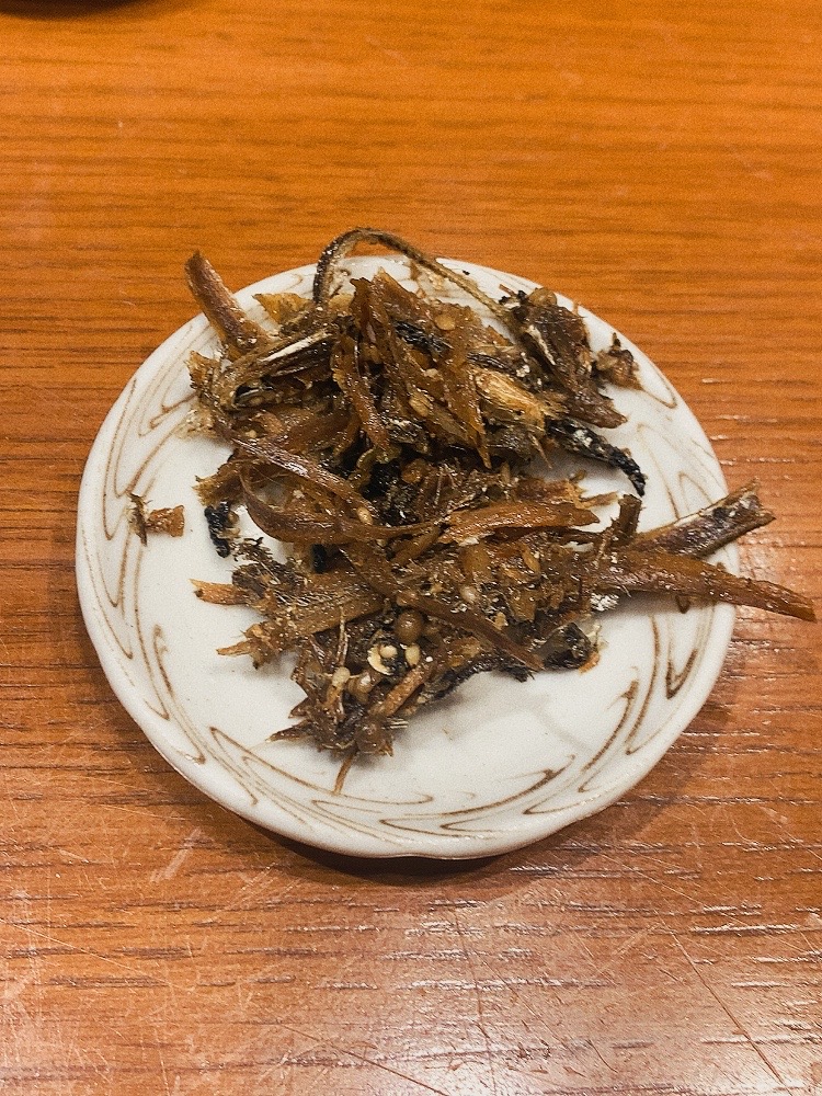 これは卓上に置けれ、食べ放題の煮干しの佃煮です。