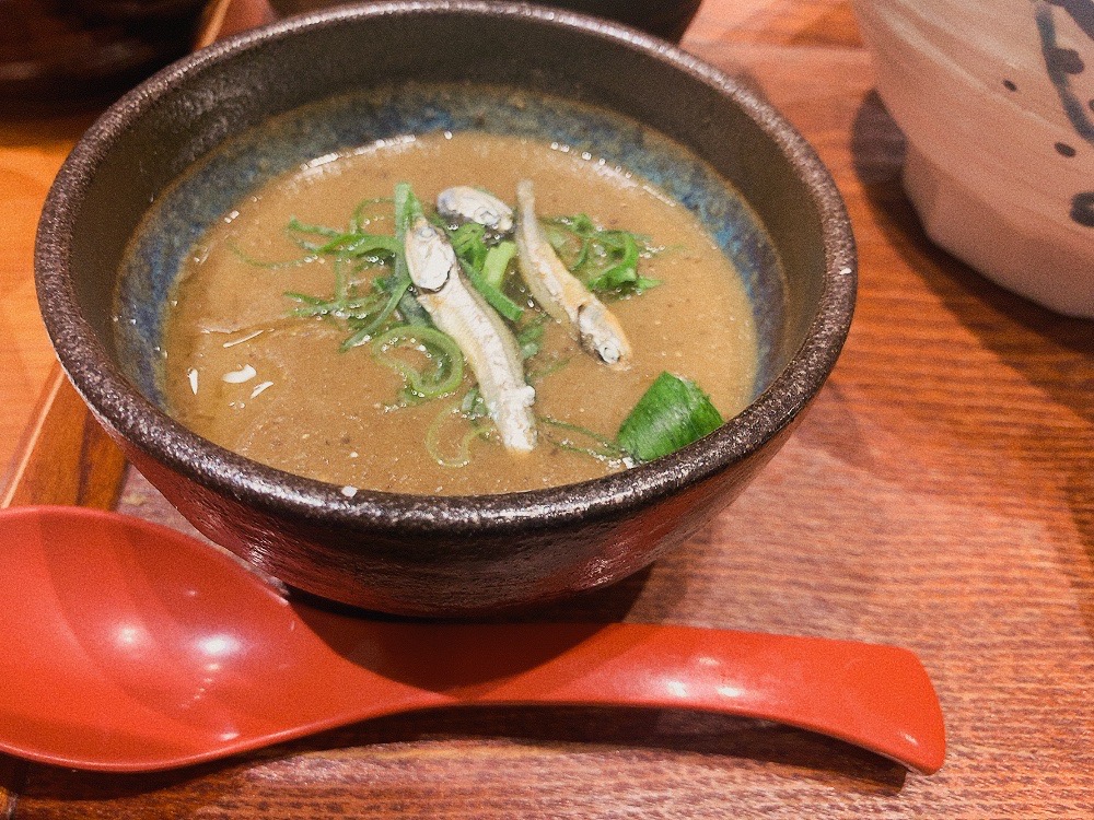 煮干しのつけ汁もしっかりした味で、後味スッキリなのでうどんを食べる箸が止まりません(笑)