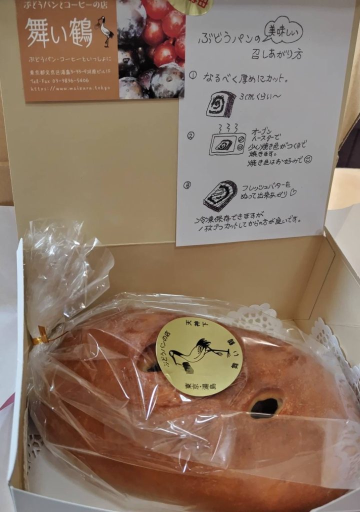 私もホワイトデーのお返しに湯島にあるぶどうパンとコーヒーのお店「舞鶴」のぶどうぱんをプレゼントしました。